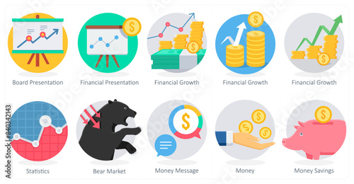 A set of 10 Business icons as board presentation, financial presentation, financial growth