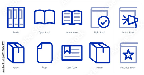 A set of 10 micro icons as books, open book, right book