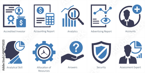 A set of 10 mix icons as accredicted investor, accounting report, analytics