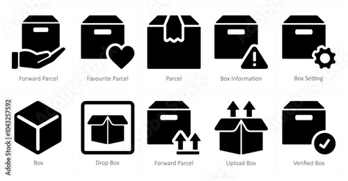 A set of 10 mix icons as forward parcel, favorite parcel, parcel