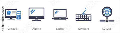 A set of 5 Internet Computer icons as computer, desktop, laptop