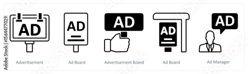A set of 5 mix icons as advertisement, ad board, advertisement board