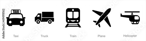 A set of 5 Mix icons as taxi, truck, train