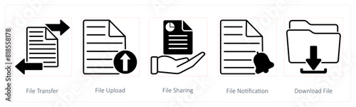 A set of 5 Seo icons as file transfer, file upload, file sharing