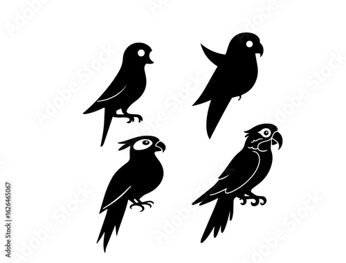 A set of birds, Parrot Minimal Bird Vector Illustration – Single Color Silhouette Design