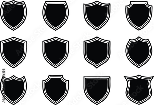 A Set of Black different type Shields Silhouette Black Vector Illustration