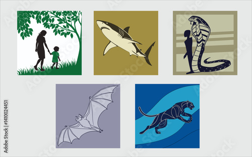 A set of black vector bird silhouettes for nature design and animal illustration icons