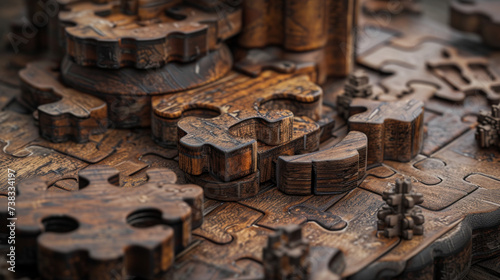 A set of classic wooden puzzles with interlocking pieces, showcasing intricate designs