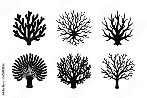 A set of coral silhouette vector art illustration