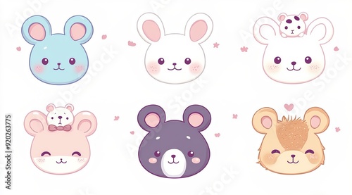 A set of cute animal icons in a vector illustration style with flat design
