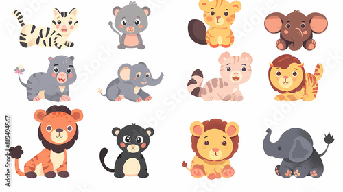 A set of cute cartoon animals. Vector flat images of animals for postcards, invitations, textiles, thermal printing