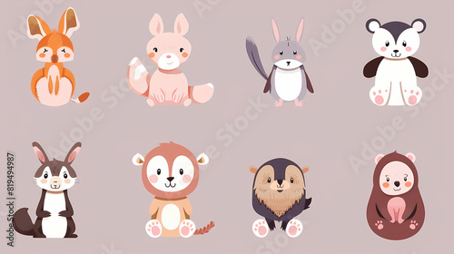 A set of cute cartoon animals. Vector flat images of animals for postcards, invitations, textiles, thermal printing