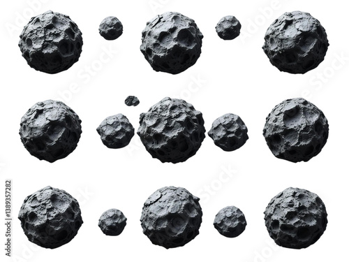 A set of detailed, high-resolution asteroids, perfect for space and science themes.