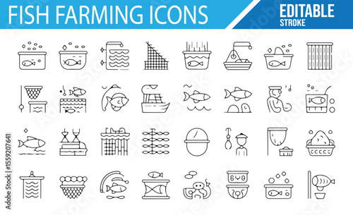 A Set of Fish, Aquarium, and Fishing Icons for Marine Life and Nature