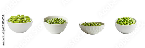 A set of fresh edamame in a clean white bowl – isolated PNG on transparent background for nutrition and wellness themes