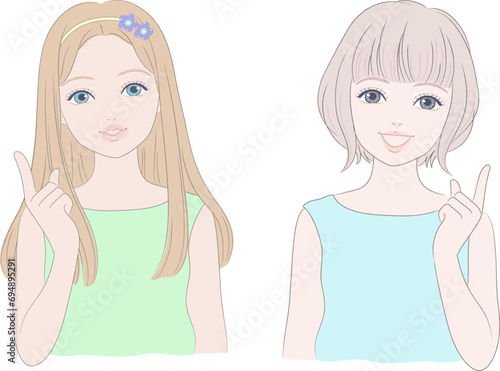 A set of girls hands with index finger pointing upward