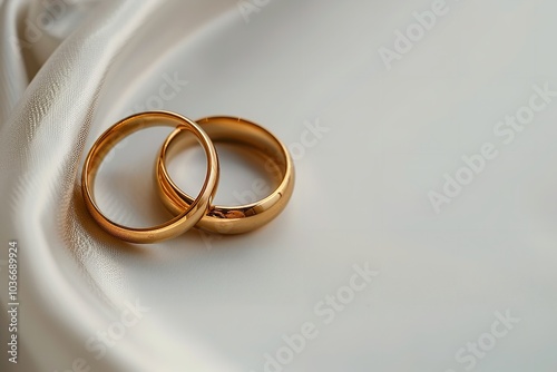 A set of gold wedding rings set on a white backdrop. Generative Ai