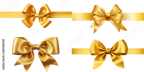 A set of Golden Ribbon and Bow Isolated on a Transparent Background