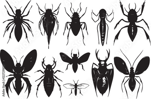A set of insects silhouettes for flat design. Hand drawn vector illustration