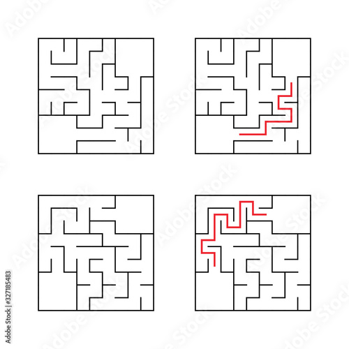 A set of mazes. Game for kids. Puzzle for children. Labyrinth conundrum. Find the right path. Color vector illustration. With answer.