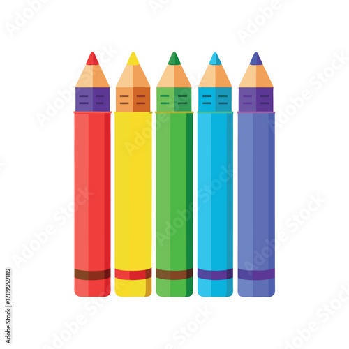 A set of multicolored pencils vector illustration in cartoon childish style isolate