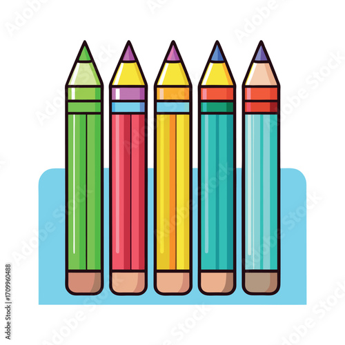 A set of multicolored pencils vector illustration in cartoon childish style isolate
