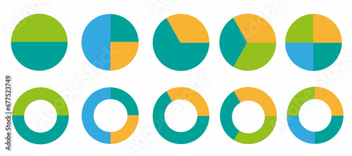 A set of pie charts. Fractions, fractions, percentages. Circular icons for infographics, web design, business presentations. Flat illustration
