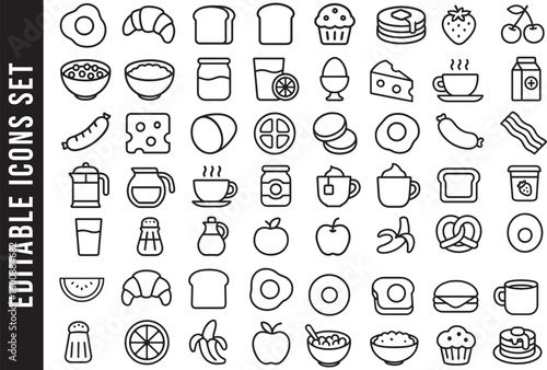 A Set of Thin Line Icons for Breakfast and Brunch Food Items
