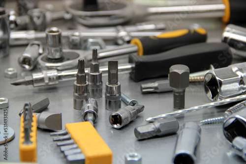 A set of tools and wrenches close-up. Tool for car repair or replacement of car parts, auto parts.