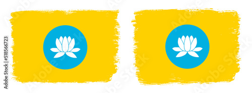 A set of two vector brush flags of Kalmykia with abstract shape brush stroke effect