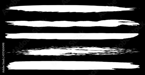 A set of vector brushes in grunge style. White paint strokes with a dry brush on a black background