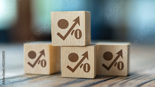 A set of wooden blocks featuring percentage symbols and upward trend arrows, symbolizing financial growth and investment success, perfect for financial themes and concept