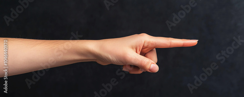 A sharply focused image of an extended hand pointing forward