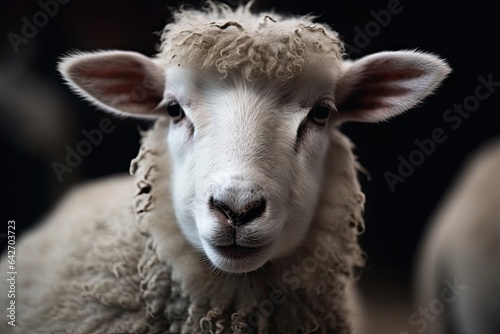 a sheep that is looking at the camera with its head slightly to the camera and it's very fluffy