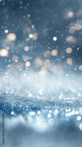A shimmering blue background with soft bokeh lights creating a dreamy, ethereal effect, perfect for various design projects.