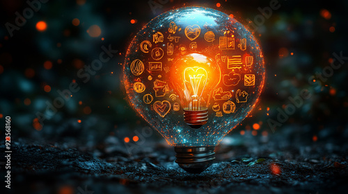 A shimmering thought bubble filled with diverse symbols, capturing the multiplicity of inspirations that lead to a singular idea. Concept of eclectic creativity.