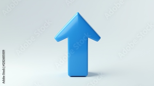 A Shiny Blue 3D Up Arrow Pointing Upwards on White Background