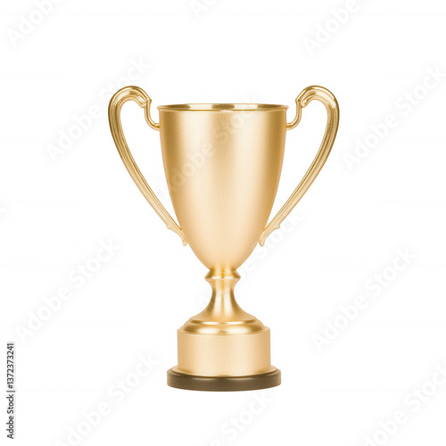 A shiny gold trophy with two handles, symbolizing achievement and victory. Isolated on a white background for a clean presentation.