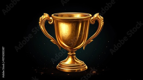 A shiny gold winner's cup with glitter on a blue background symbolizes victory and success in competition