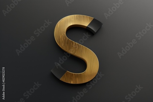A shiny golden letter S on a dark black background. Suitable for various design projects