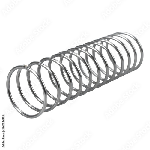 A shiny metallic spring in a compact form, symbolizing elasticity and industrial design on a transparent background.