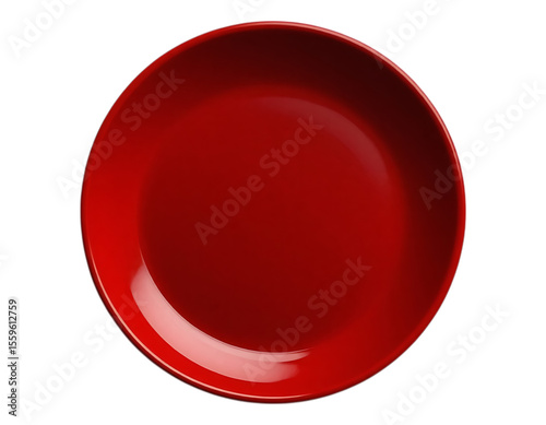 A Shiny, Red, Round Plate on a Transparent Surface