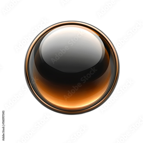 A shiny, round, black and orange button