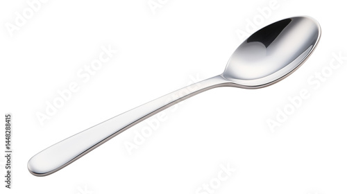 A shiny silver spoon isolated on a black background with a smooth and sleek appearance isolated on transparent background