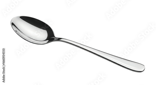A shiny stainless steel spoon isolated on white background ideal for culinary use