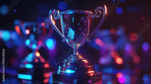 A shiny trophy sits atop a table, perfect for awards ceremonies or business displays