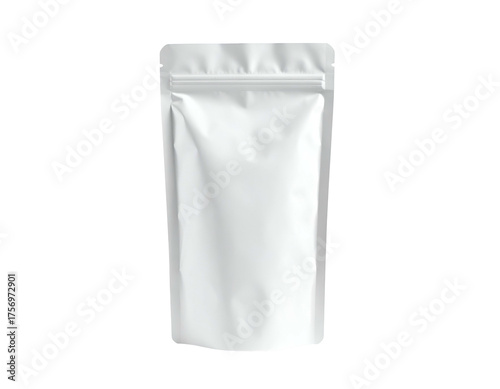 A shiny, white pouch with a zipper closure, isolated against a black background