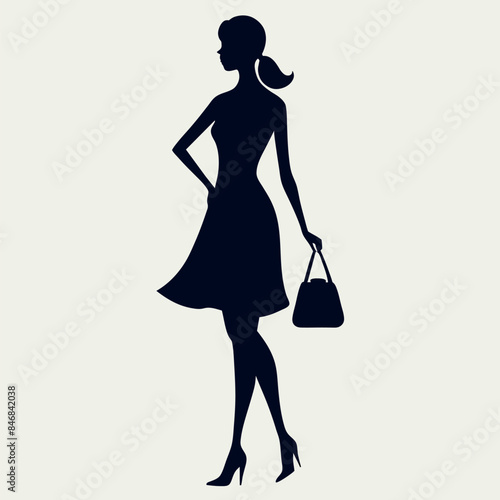 A shopping woman holding a bag standing pose victor silhouette