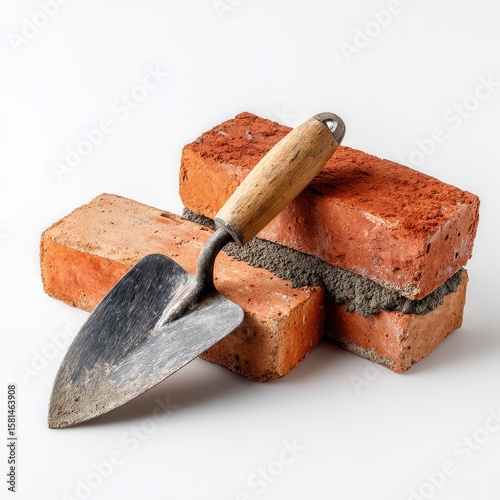 A shovel and bricks