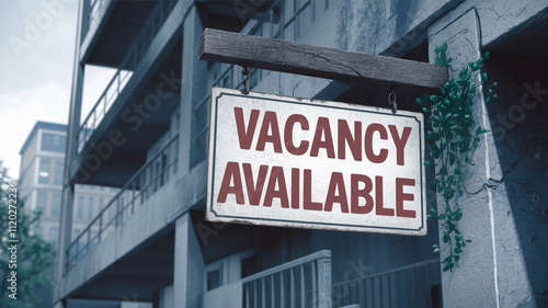 A sign with the text Vacancy Available. The sign is illustrated in a cartoon style, with the text in a bold font